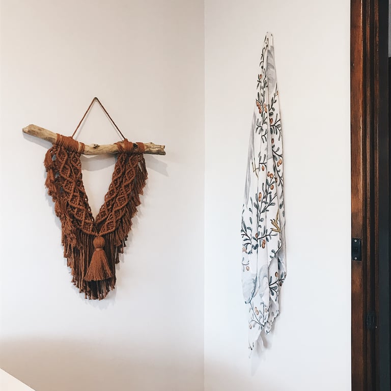 This beautiful amber cotton is sure to grab your attention. Hanging simply on a hand chosen branch - this wall hanging is the perfect addition to any room.