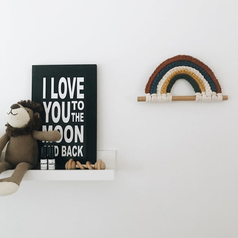 Handmade for the finest Australian Cotton and woven on a piece of timber dowel, this beauty is the perfect addition to your baby nursery or little one's room.