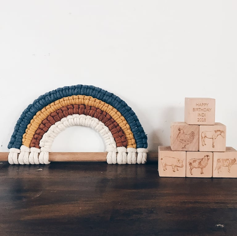 Handmade for the finest Australian Cotton and woven on a piece of timber dowel, this beauty is the perfect addition to your baby nursery or little one's room.