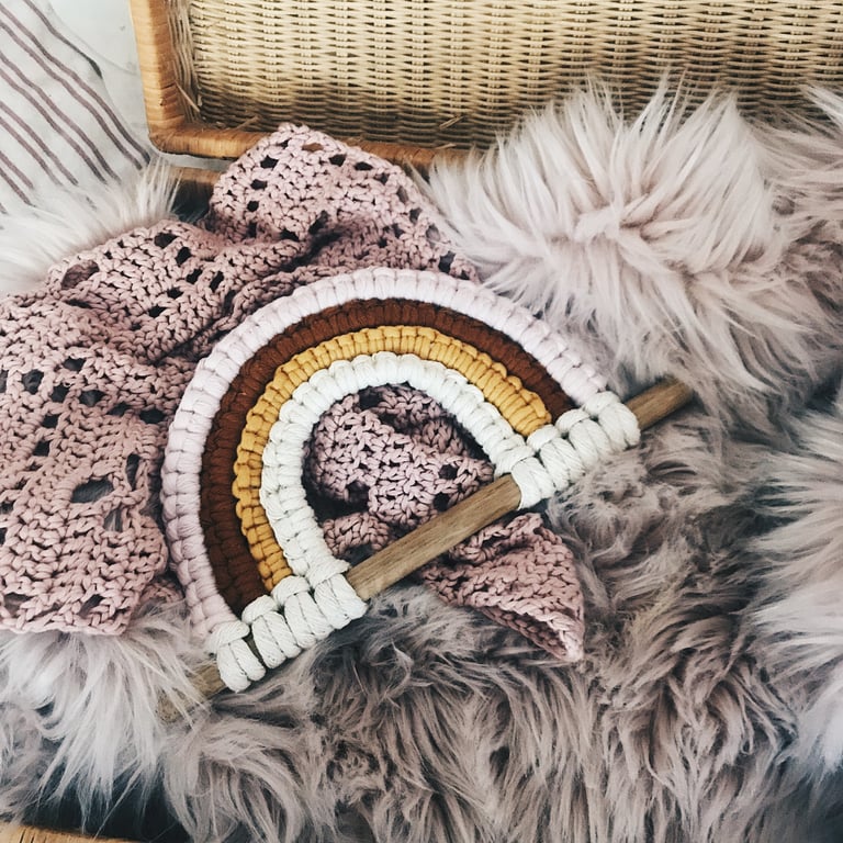 Handmade for the finest Australian Cotton and woven on a piece of timber dowel, this beauty is the perfect addition to your baby nursery or little one's room.